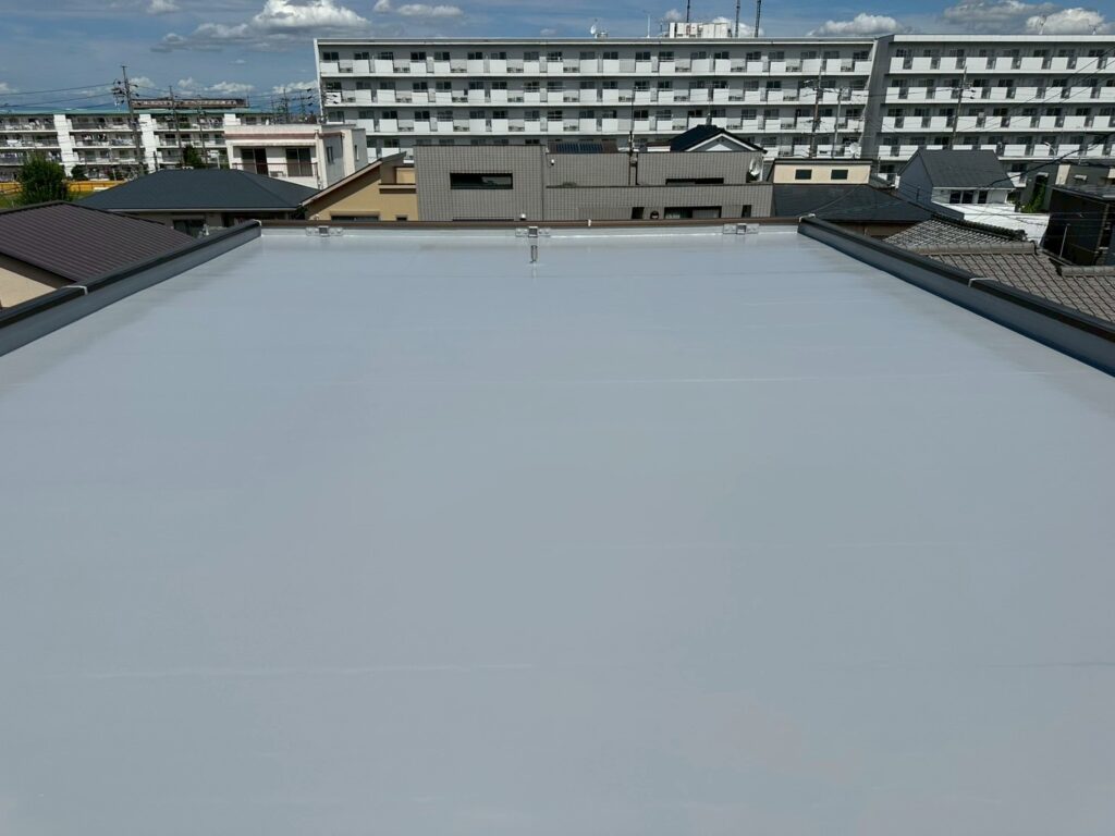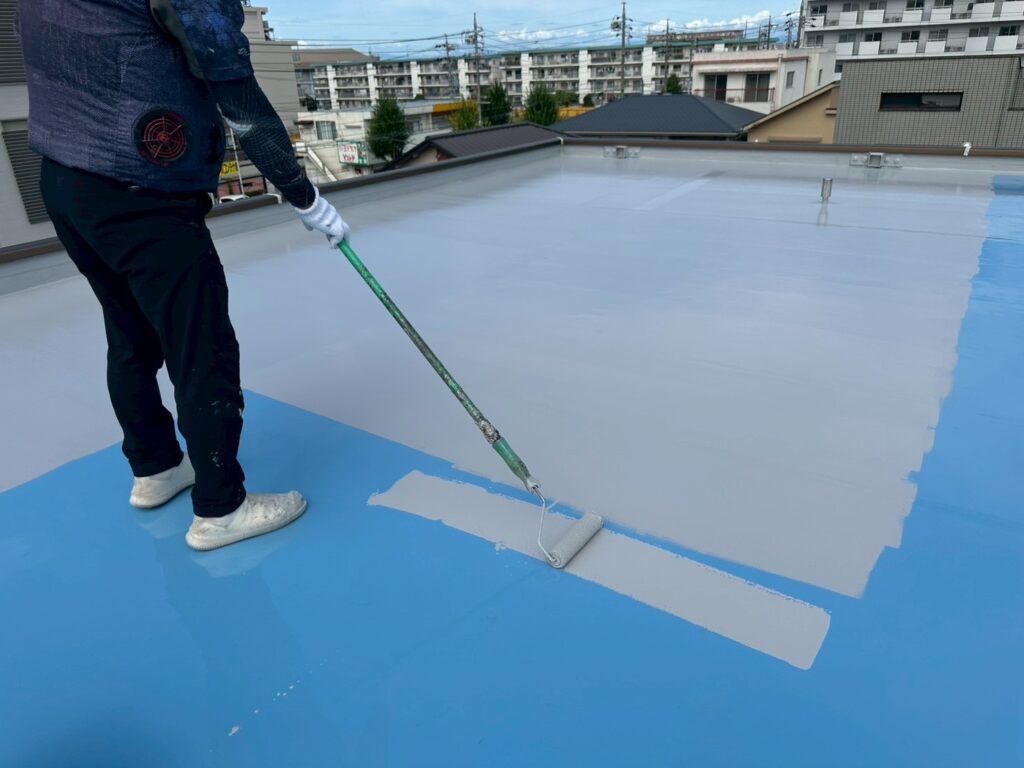 愛知県名古屋市守山区 住宅 屋上 ウレタン塗膜防水 加藤良典 2025-09-20 業務風景 トップコート塗布状況 トップコート塗布完了 タグ: ウレタン塗膜, 住宅, 名古屋市, 屋上, 愛知県, 防水, 雨漏り
