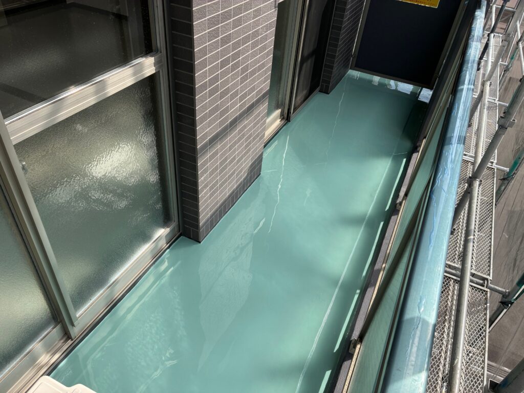 岐阜県多治見市 マンション 改修工事 バルコニー ウレタン塗膜防水 加藤良典 2026-02-17 業務風景 ウレタン塗布(2層目) タグ: ウレタン塗膜, バルコニー, マンション, 多治見市, 岐阜県, 防水, 雨漏り