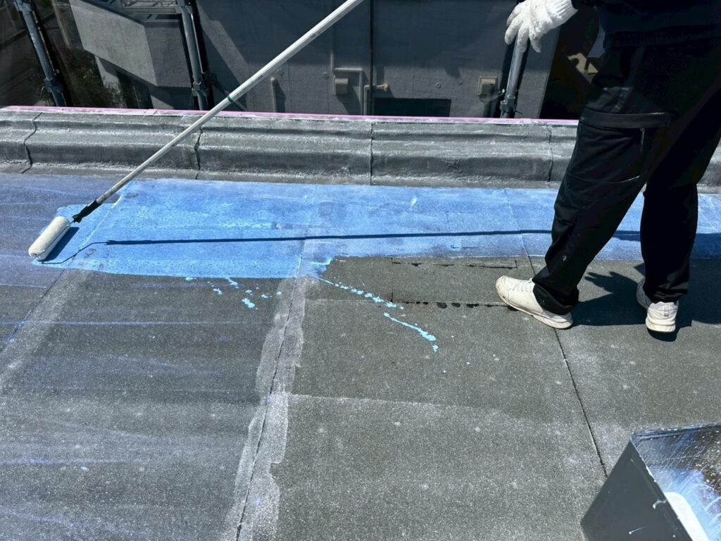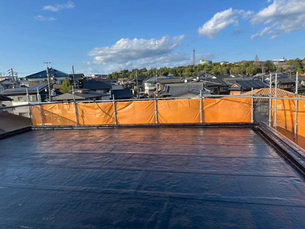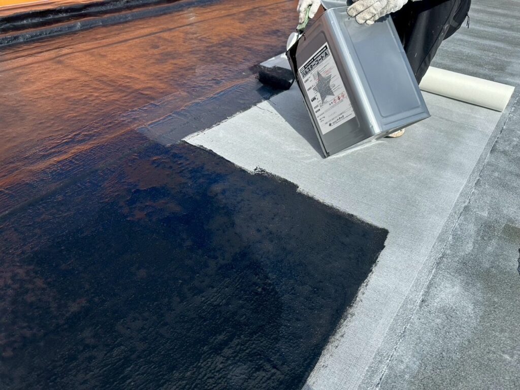 岐阜県多治見市 住宅 屋上 改質(ゴム)アスファルト系塗膜防水 加藤良典 2026-04-02 業務風景 プライマー塗布状況 改質アスファルト塗布状況(メッシュ貼り付け) 改質アスファルト塗布 タグ: 住宅, 塗膜, 多治見市, 屋上, 岐阜県, 改質アスファルト, 防水, 雨漏り